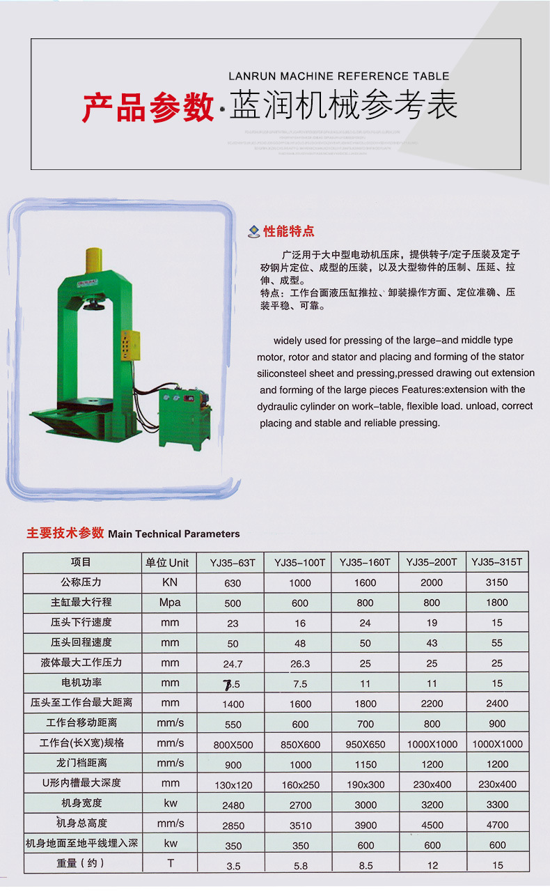 無錫藍潤機械是一家集生產(chǎn)和銷售單柱液壓機、龍門液壓機、液壓校直機、自動校直機等各類型號的專業(yè)液壓機制造商,液壓機產(chǎn)品遠銷國內(nèi)外,質(zhì)優(yōu)價廉,品種齊全,受到廣大客戶的好評。